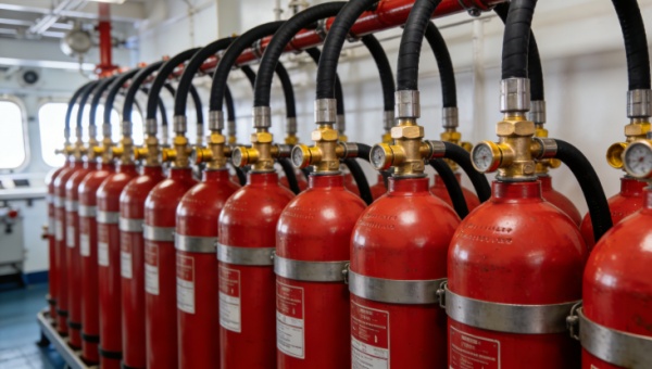 Groupe de bouteilles du système d’extinction au dioxyde de carbone